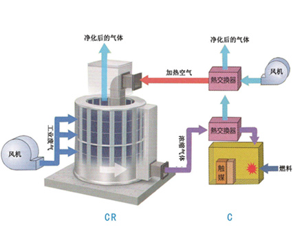 把有机废气加热到760℃以上,将有机废气氧化生成CO2和H2O,从而净化废气,并回收分解时所释出的热量,以达到环保节能的双重目的,是一种用于处理中高浓度挥发性有机废气的节能型环保装置。